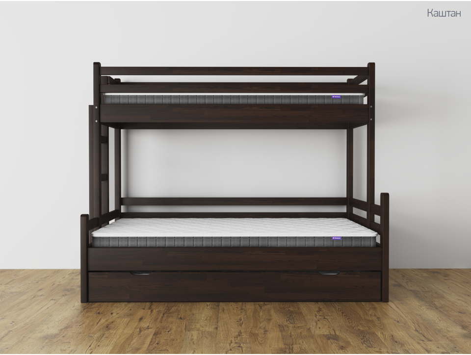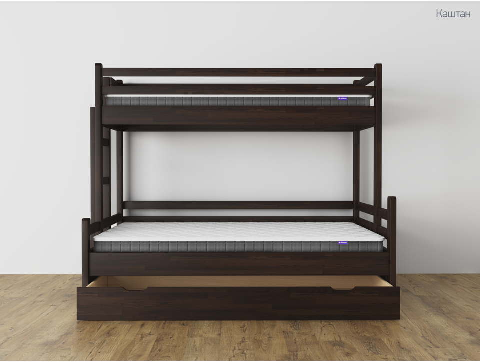 ✅ Стандартная комплектация: жесткое основание из прямых брусков + настил из ДВП (стандартное основание) - очень прочное и способно выдерживать большие нагрузки. Нижнее спальное место кровати может иметь ширину такую же, как и верхнее, или быть шире: 120/140/160 см. На стоимость кровати это не влияет.