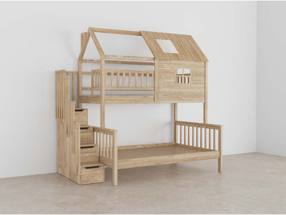 Лестница-комод в кровати может быть установлена справа или слева (на выбор).