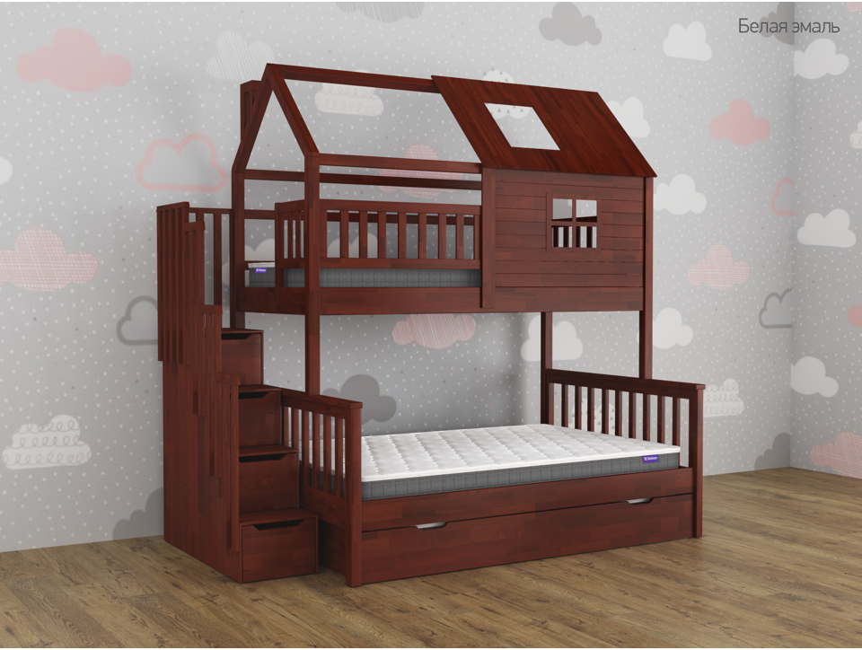 ✅ Кровать укомплектована выкатным спальным местом на колесиках, которое не крепится к кровати (выдвигается полностью). Выкатное спальное место включено в стоимость. Матрасы в комплект не входят!