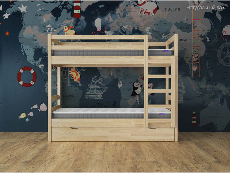 ✅ Кровать укомплектована выкатным спальным местом на колесиках, которое не крепится к кровати (выдвигается полностью). Выкатное спальное место включено в стоимость. Матрасы в комплект не входят!