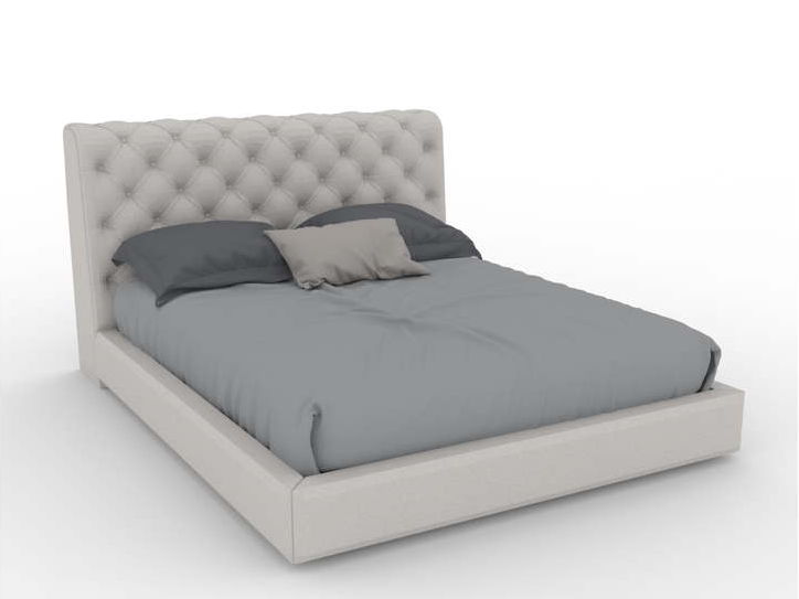 Кровать с высоким мягким изголовьем с утяжкой по краям.