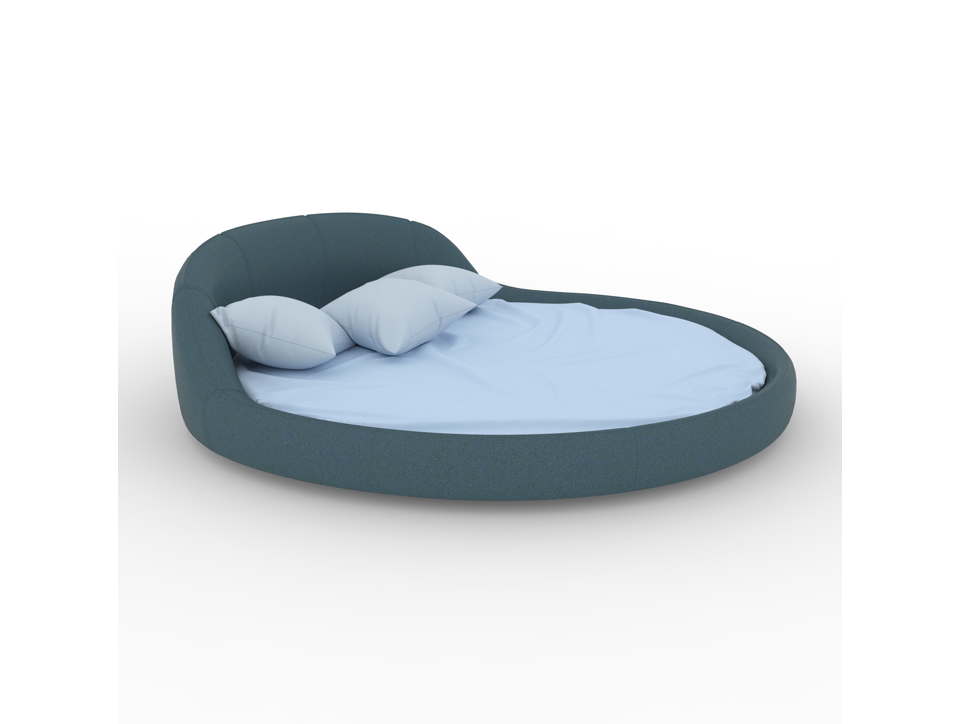 Лаконичная круглая модель с очень низким изголовьем, которое лишь слегка возвышается над матрасом. Конструкция без лишнего декора, с обивкой по всей окружности. Форма минималистична, создавая современный вид.