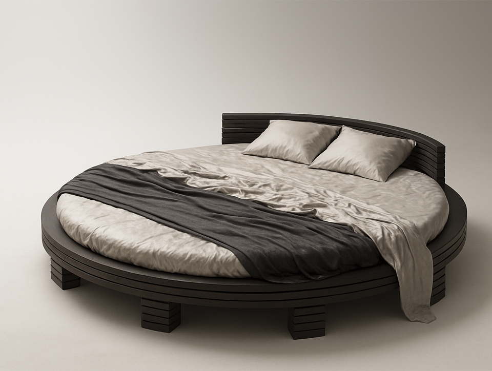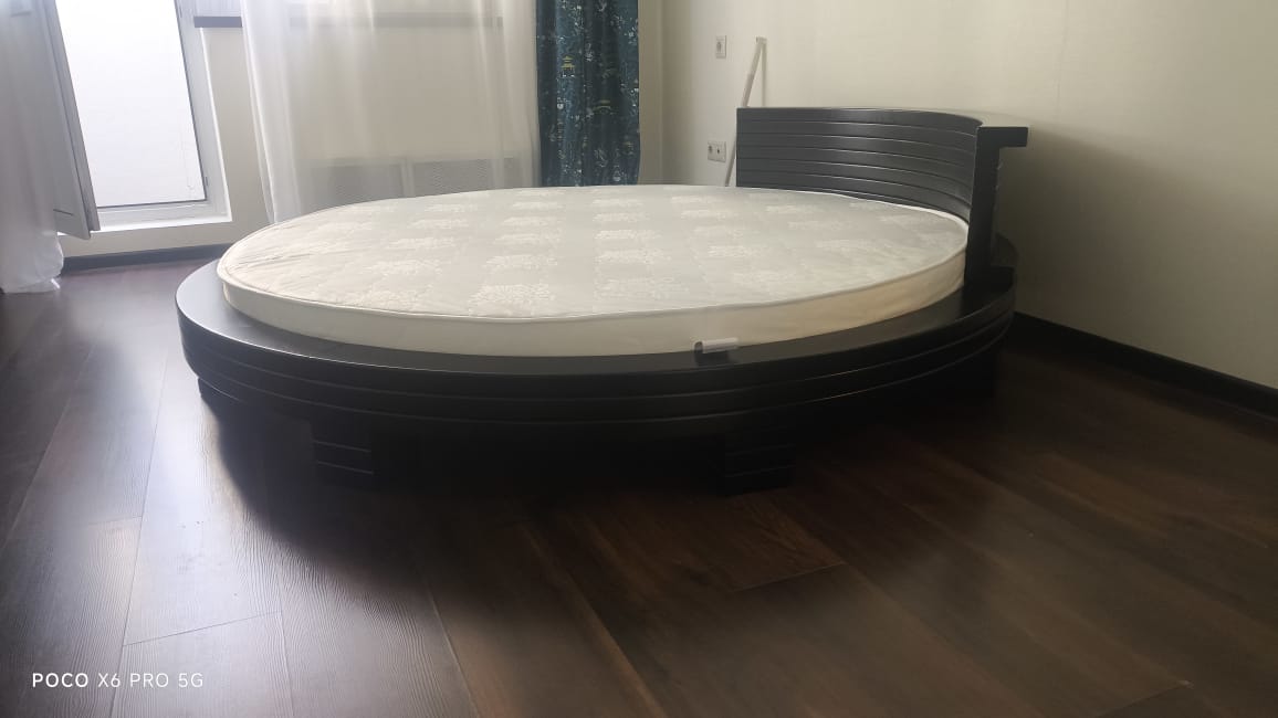 ✅ Круглая двуспальная кровать поставляется без матраса. Классический вариант обивки - износостойкий велюр.