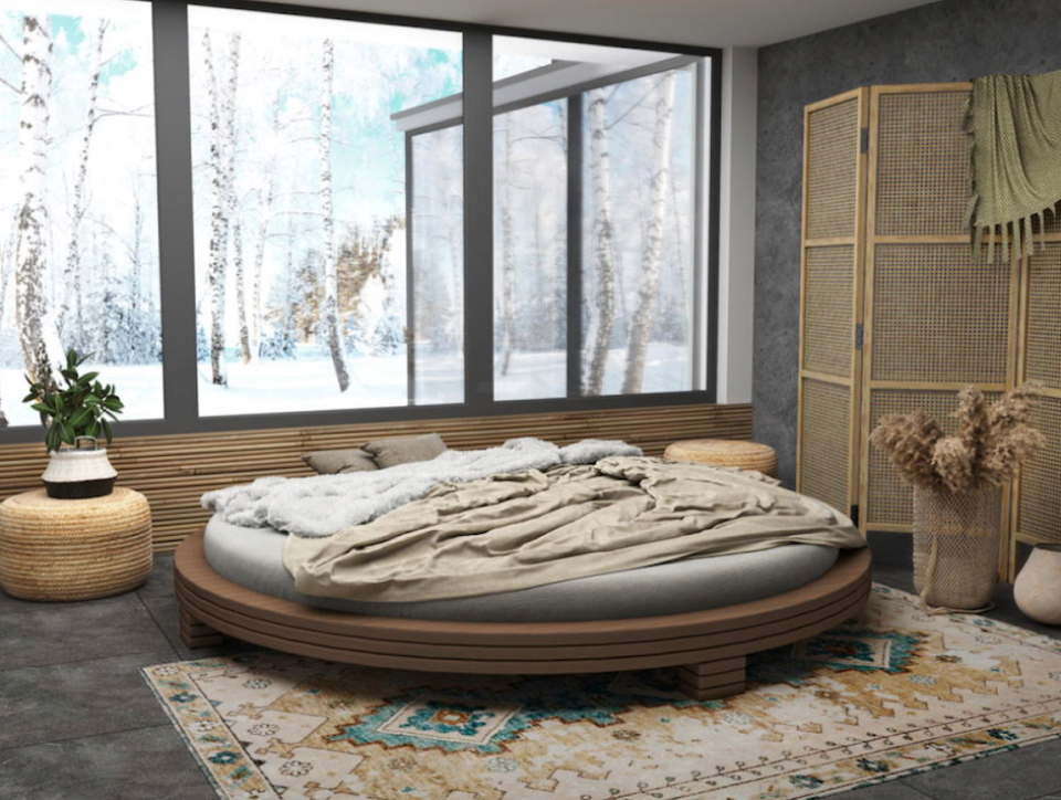 ✅ Круглая двуспальная кровать поставляется без матраса. Классический вариант обивки - износостойкий велюр.