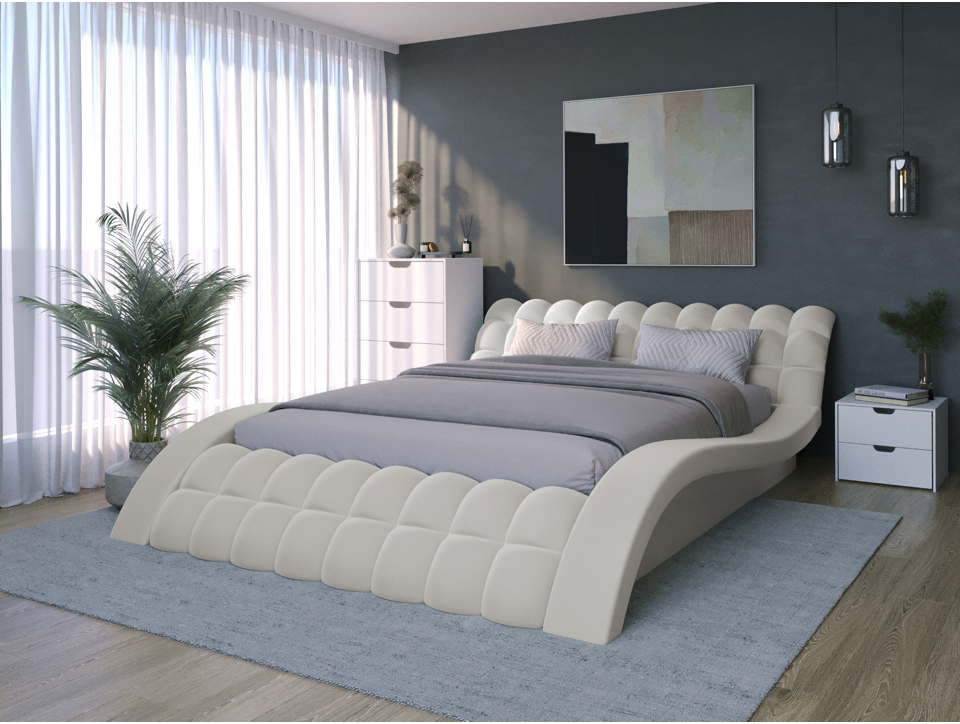 ✅ Кровать с мягким изголовьем бежевая подарит комфорт и уют. Светлый цвет делает спальню просторнее. Кровать доступна в других цветах, размерах и комплектациях.