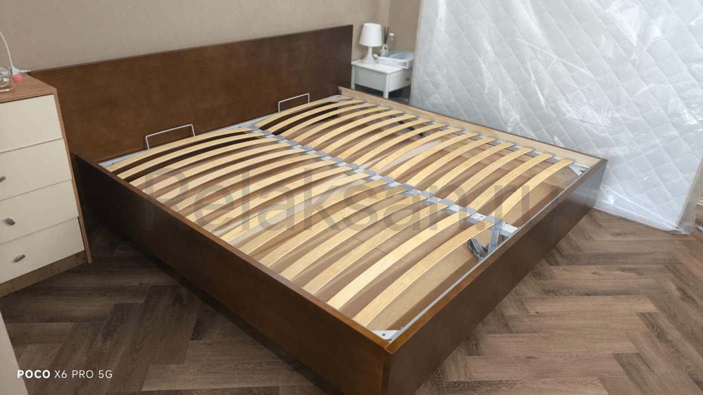 ✅ Каркас парящей кровати - жесткое основание из прямых брусков + настил из ДВП (стандартное основание) - очень прочное и способно выдерживать очень большие нагрузки. По желанию (за дополнительную плату) кровать можно укомплектовать основанием с ламелями (или подъемным механизмом, если это предусмотрено моделью).