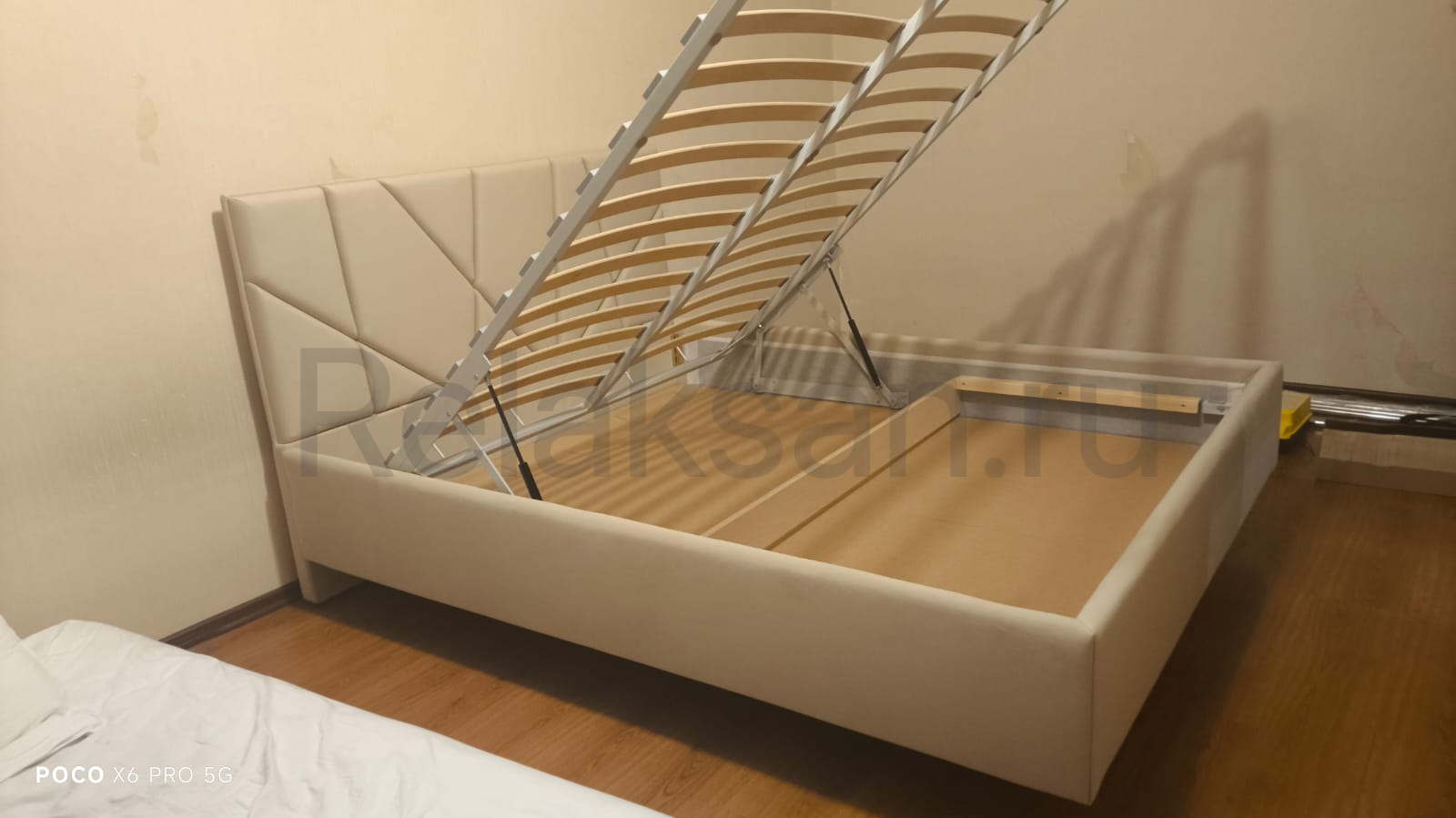 ✅ Кровать укомплектована ортопедичским основанием с ламелями и подъемным механизмом с ящиком для белья. Это обеспечивает функциональность кровати и удобство хранения вещей в спальне. Полезная глубина ящика от дна до верха основания - 15 см.