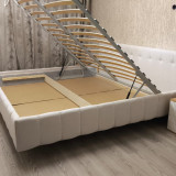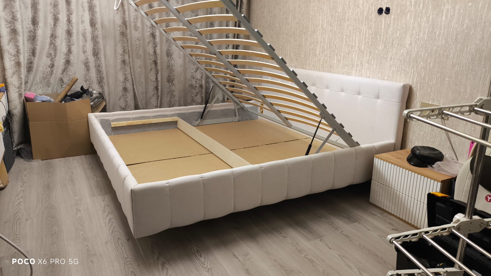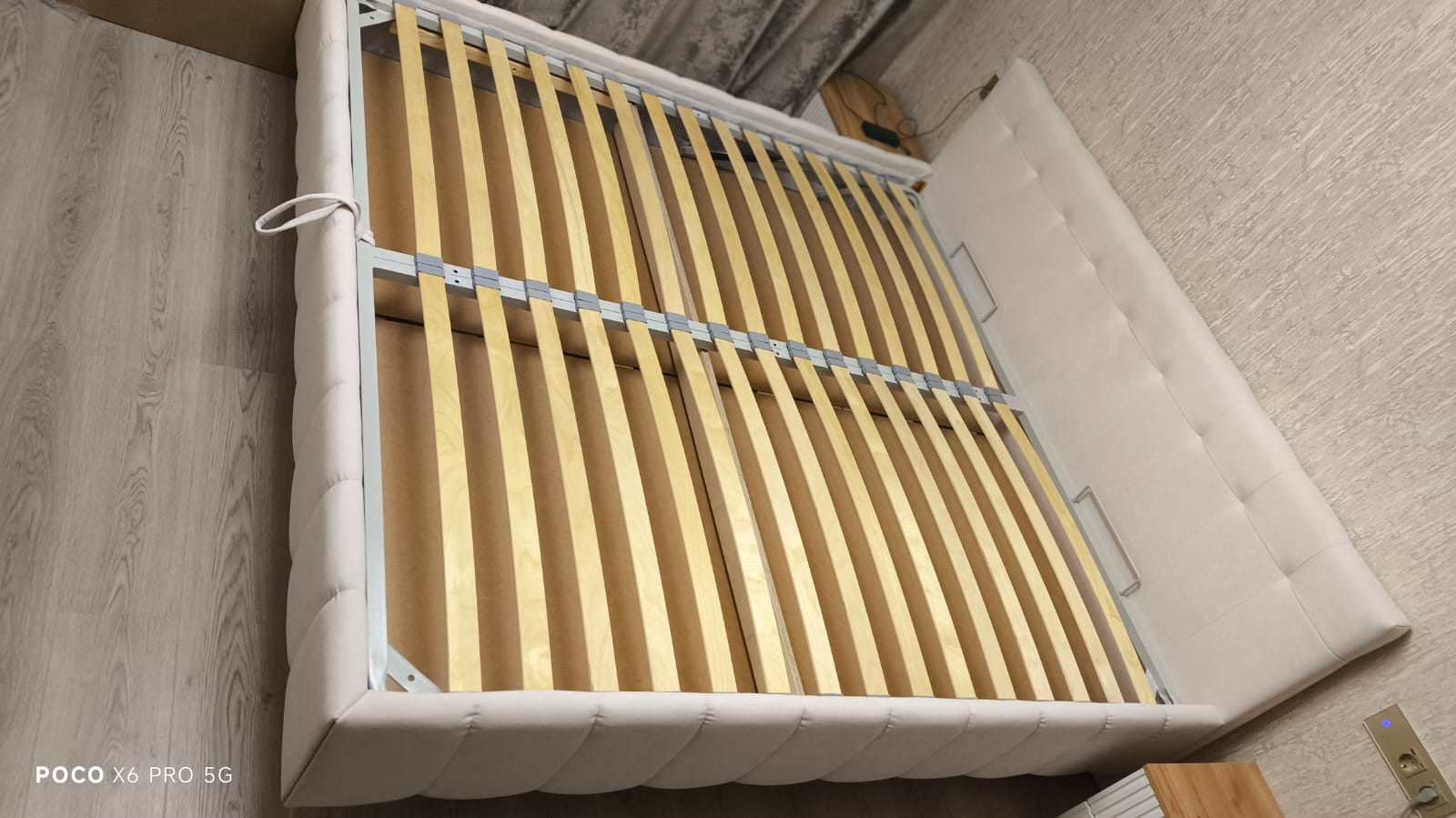 ✅ Кровать укомплектована ортопедичским основанием с ламелями и подъемным механизмом с ящиком для белья. Это обеспечивает функциональность кровати и удобство хранения вещей в спальне. Полезная глубина ящика от дна до верха основания - 15 см.