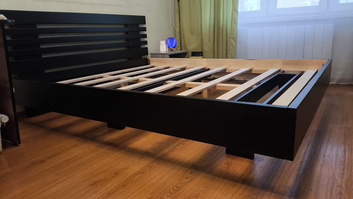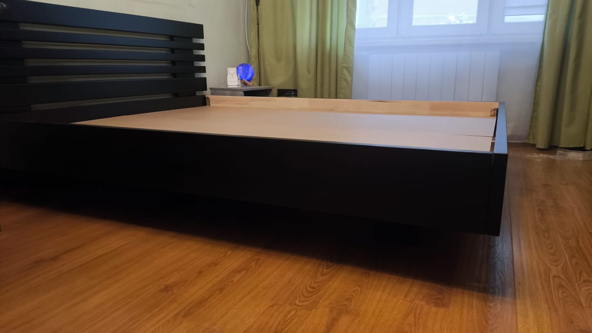 Кровать покупали дочери и её подружкам, которые часто остаются ночевать. Верхний ярус — мечта ребёнка: бортики высокие, поверхность гладкая, ничего не торчит. Лестница надёжная, наклон удобный. Нижний ярус уютный, не тёмный. Дерево тёплое, запах естественный. Ящики — огромный плюс: наконец-то игрушки не валяются по всей комнате. За два месяца эксплуатации ничто не разболталось.